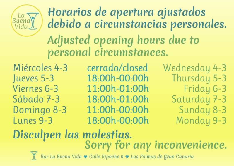 Bar La Buena Vida is a friendly and secure place. We all want to maintain this. Therefore we have internal rules for access and stay. Please respect them.